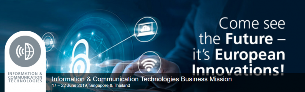 EU Business Avenues in SE Asia (ICT stream) will see some 50 European ICT SMEs showcasing their offerings at Marriott Queens Park on Friday 21 … Continue reading INFORMATION & COMMUNICATION TECHNOLOGIES BUSINESS MISSION