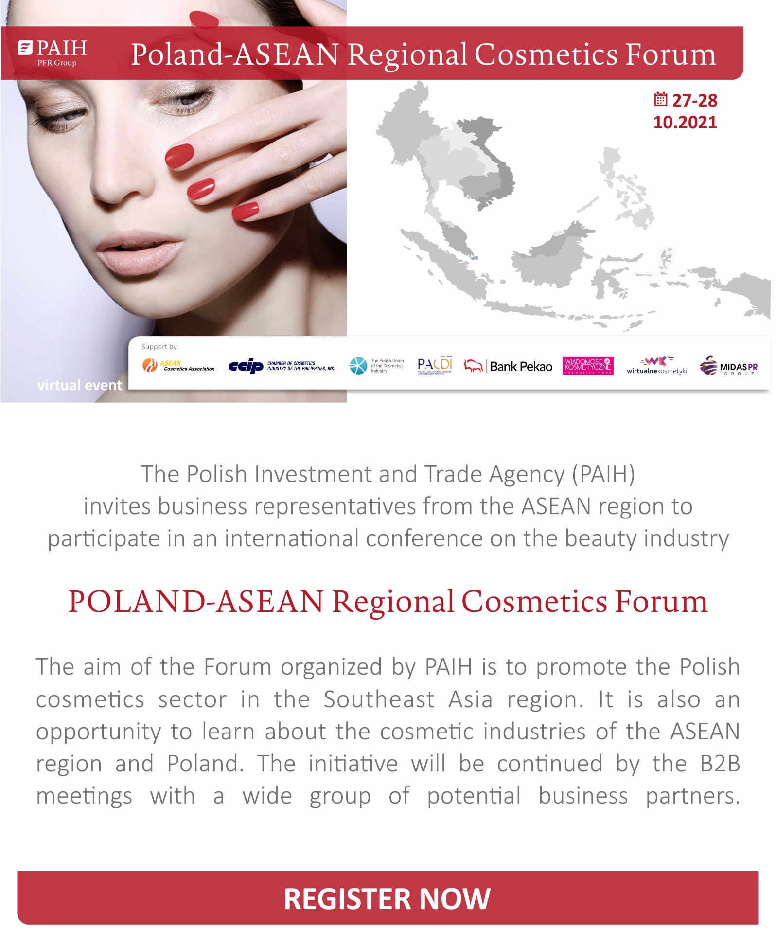 More information about Poland-ASEAN – Regional Cosmetics Forum; https://www.paih.gov.pl/Poland-ASEAN-Regional_Cosmetics_Forum#about