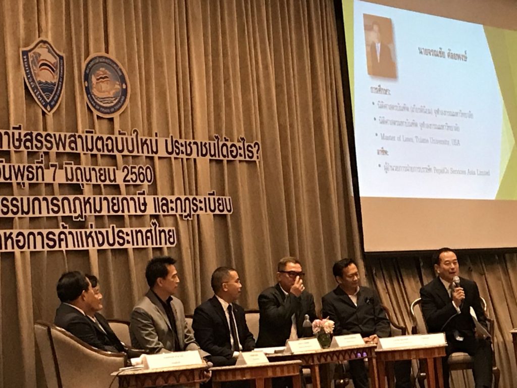 On 7 June 2017, the EABC Policy Manager, Mr. Chaladbhum Temkasem, EABC Automotive Working Group / Platinum Partner / BMW, Mr. Ron Sirivanasandha, EABC Food and Beverages / Gold Partner / Diageo, Mr. Thanakorn Kuptajit, Ms. Rachanatorn Laohaphan, Ms. Khemika Ratanakul, EABC Gold Partner Pernod Ricard, Ms. Wannaporn Wattanakasemsat, EABC IPR Working Group / Gold Partner / Philips Morris, Mr. Pongsathorn Aususinha, Ms. Wanrawee Fuangkajonsak, participated in the New Excise Act Seminar hosted by Thai Chamber of Commerce. The event discussed on the benefits of the new Excise Act.
