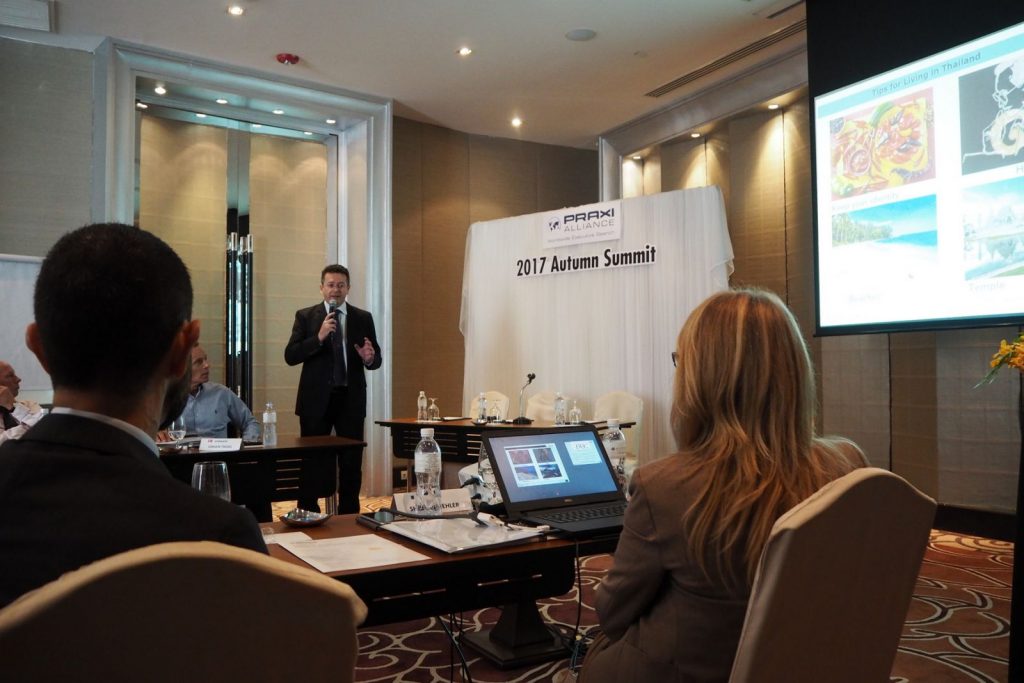On 20 October 2017, Mr. Rolf-Dieter Daniel, President of EABC European Chamber of Commerce, delivered presentation “Welcome to Thailand” at the opening of PRAXI Alliance 2017 Autumn Summit, Pullman Hotel Sukhumvit. The President shared business issues and practices in ASEAN and Thailand as well as his tips for foreigners living in Thailand. Other EABC participants were Mr. Chaladbhum Temkasem, Executive Director, Ms. Pasiree Thongsak, Membership and Communications Manager, and EABC members, Mr. Laurent Landie, Thai Ecotrade and Mr. Stefano Innocenti, Ducati.
