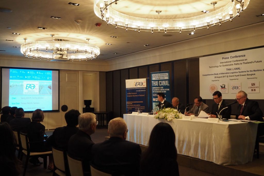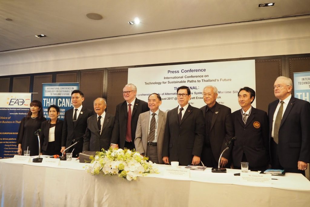 On 28 August 2017, the press conference of “International Conference on Technology for Sustainable Paths to Thailand’s Future, THAI CANAL – COMPREHENSIVE STUDY OF ALTERNATIVE LOGISTICS SYSTEMS FOR THE MARITIME SILK ROAD” by King Mongkut’s Institute of Technology Ladkrabang (KMITL) and Thai Canal Association for Study and Development (TCA), in support of European Association for Business and Commerce (EABC) was held to highlight the importance of Thai canal feasibilities from both academic and visionary perspectives. The event took place at Grand Hyatt Erawan Bangkok Hotel.